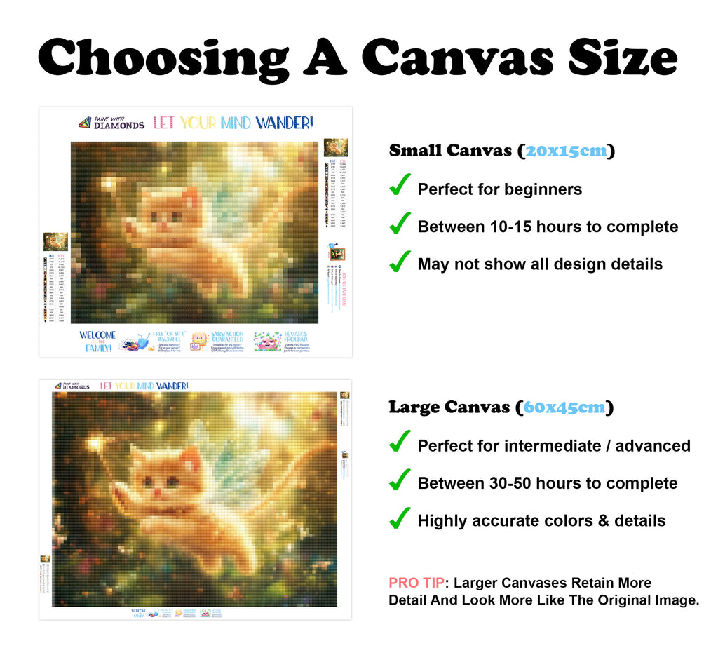 Large canvases show tiny details and all lettering, but may take up to 50+ hours to complete.