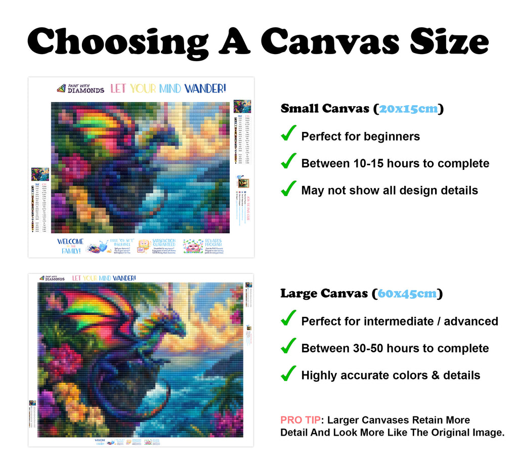 Escape into a world of vibrant colors and creative tranquility with the ‘Tropical Paradise Dragon’ Diamond Painting Kit. This exclusive full-drill design by artist Caleb Smith is available only at Paint With Diamonds. Let your mind unwind as you piece together shimmering diamonds to create a beautiful masterpiece.