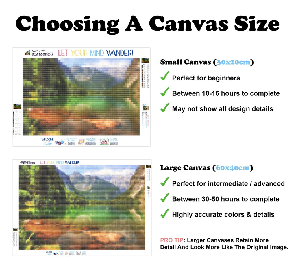 PREMIUM DIAMOND PAINTING KIT: Official Diamond Art kit includes 1x stay-flat adhesive canvas, 1x set of shimmering eco-friendly resin diamonds, and 1x premium toolkit. Diamonds cover the whole canvas.