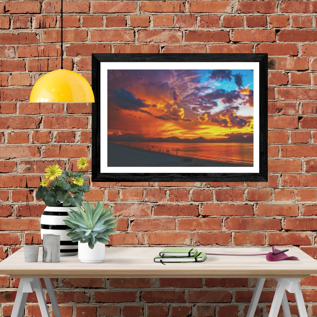 Relax, unwind, and create Diamond Art! "Burning Sky" is now available at Paint With Diamonds® as a full-drill Diamond Painting Kit in your choice of Round or Square diamonds.