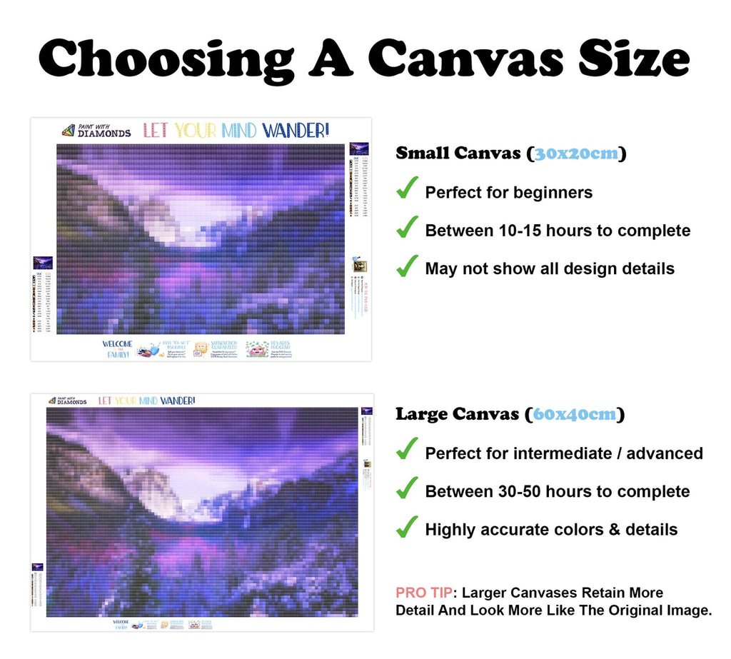 PREMIUM DIAMOND PAINTING KIT: Official Diamond Art kit includes 1x stay-flat adhesive canvas, 1x set of shimmering eco-friendly resin diamonds, and 1x premium toolkit. Diamonds cover the whole canvas.