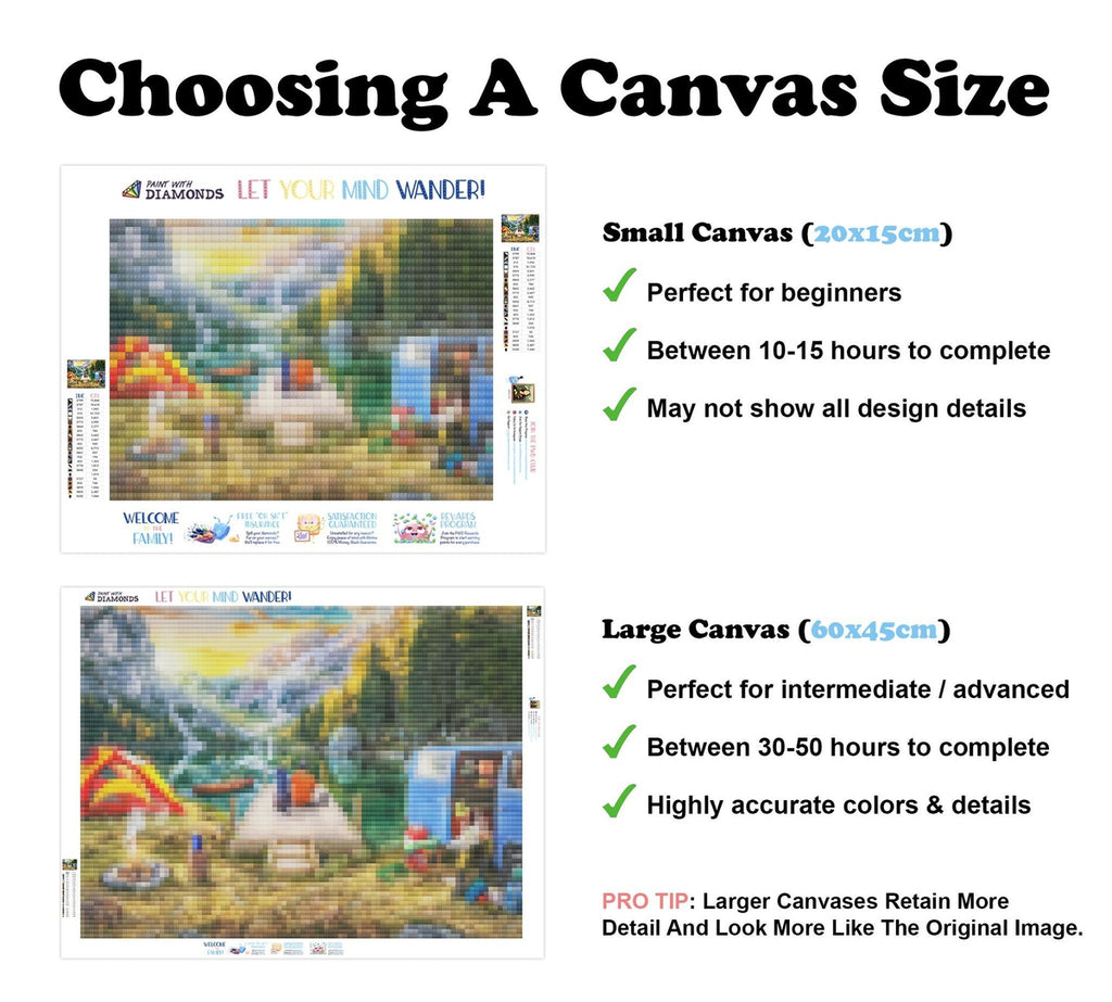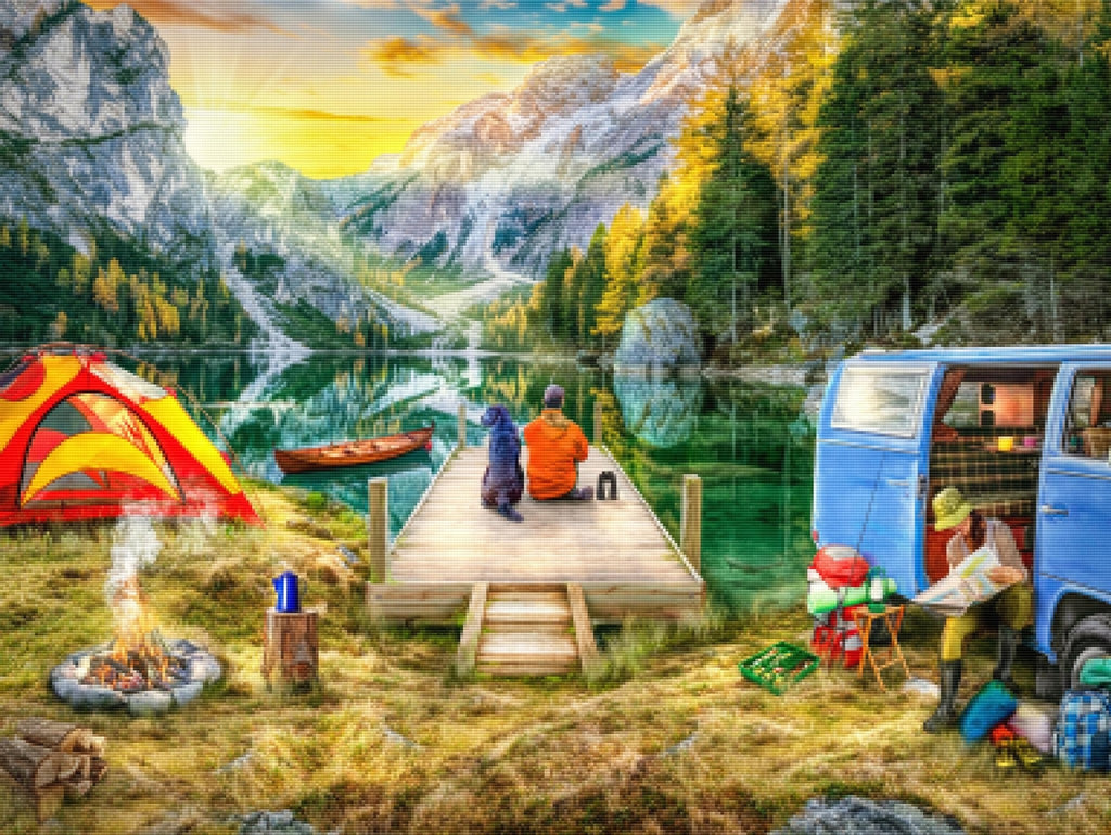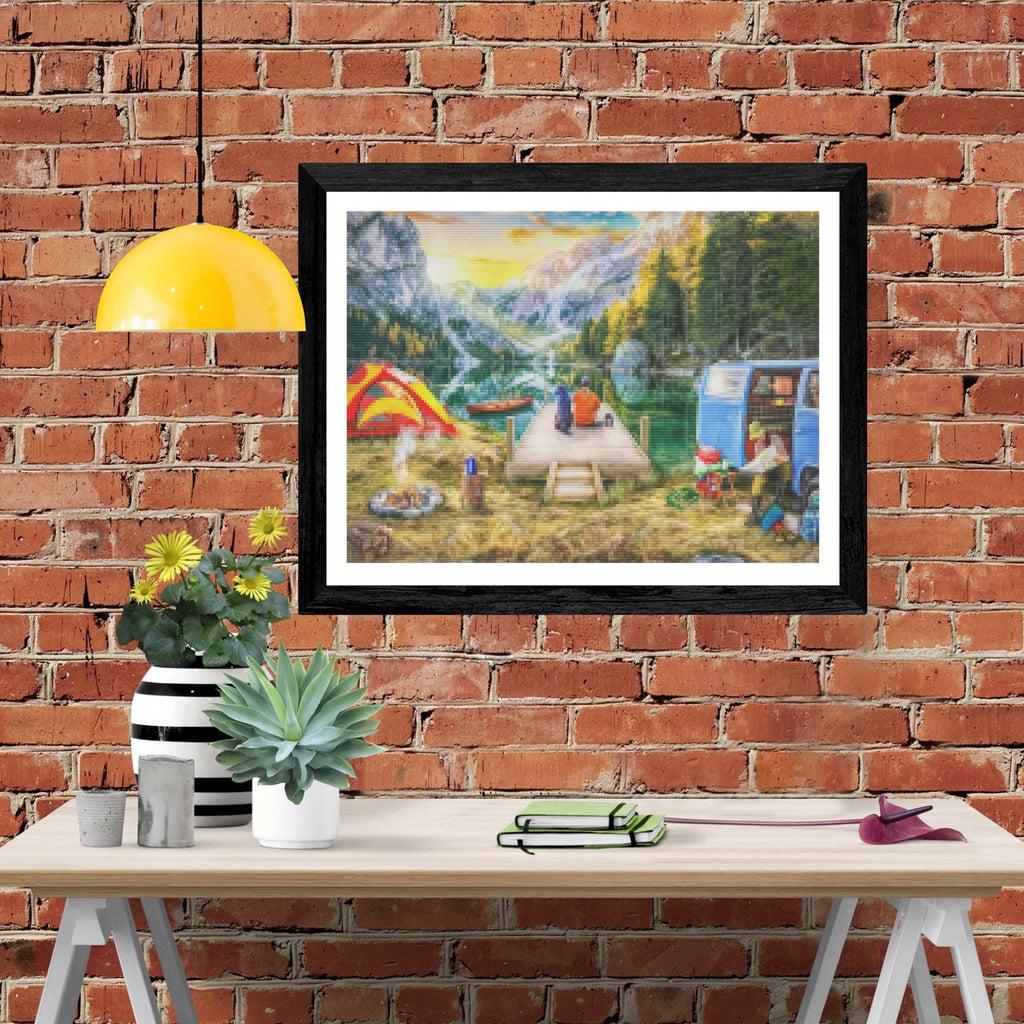 Relax, unwind, and create Diamond Art! "Wanderlust Camping" by artist Lars Stewart is now available exclusively at Paint With Diamonds® as a full-drill Diamond Painting Kit in your choice of Round or Square diamonds.
