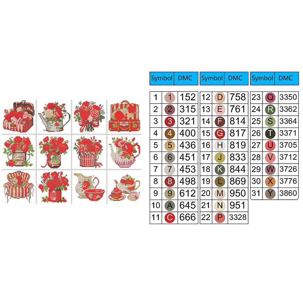 FEATURING 12 ELEGANT RED FLORAL DESIGNS: Enjoy 12 charming and timeless floral-themed designs, including:
