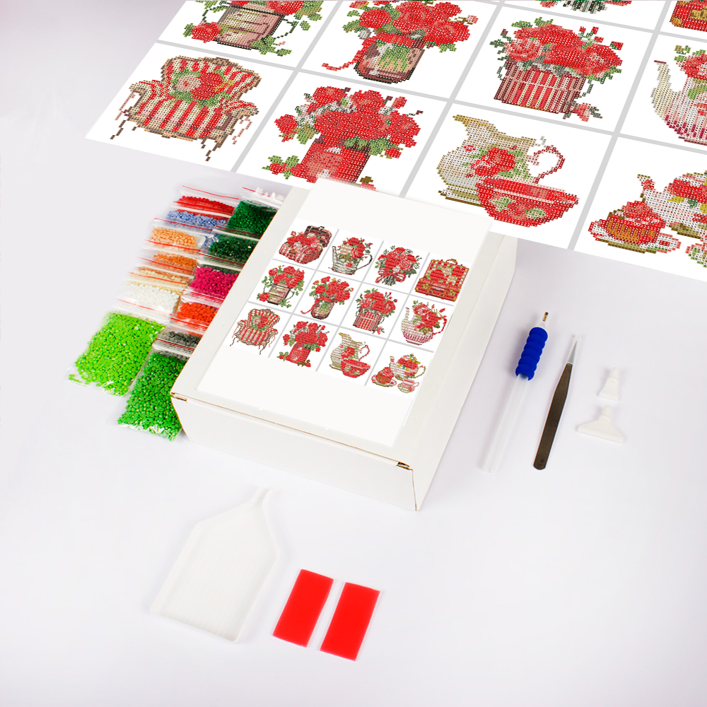 Red Florals Diamond Painting Minis (Set Of 12)