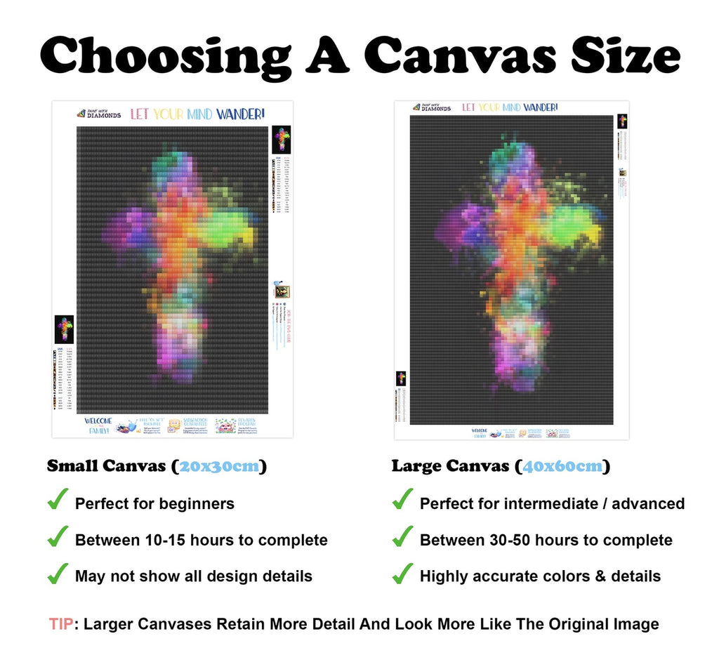 Relax, unwind, and create Diamond Art! "Rainbow Cross" is now available at Paint With Diamonds® as a full-drill Diamond Painting Kit in your choice of Round or Square diamonds.