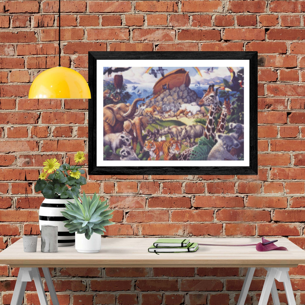 Create your own shimmering DIY wall art, one "diamond" at a time! This gorgeous full drill Diamond Painting Kit is entitled "Noah's Ark" and includes everything you need to get started!