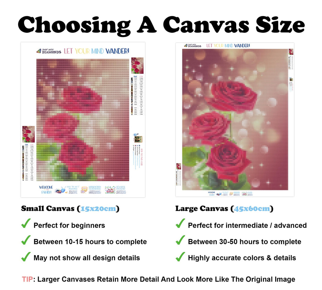 PREMIUM DIAMOND PAINTING KIT: Official Diamond Art kit includes 1x stay-flat adhesive canvas, 1x set of shimmering eco-friendly resin diamonds, and 1x premium toolkit. Diamonds cover the whole canvas.