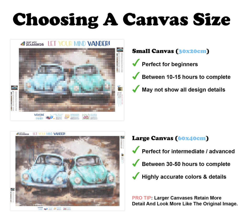 Relax, unwind, and create Diamond Art! "Buggy Sweethearts" is now available at Paint With Diamonds® as a full-drill Diamond Painting Kit in your choice of Round or Square diamonds.