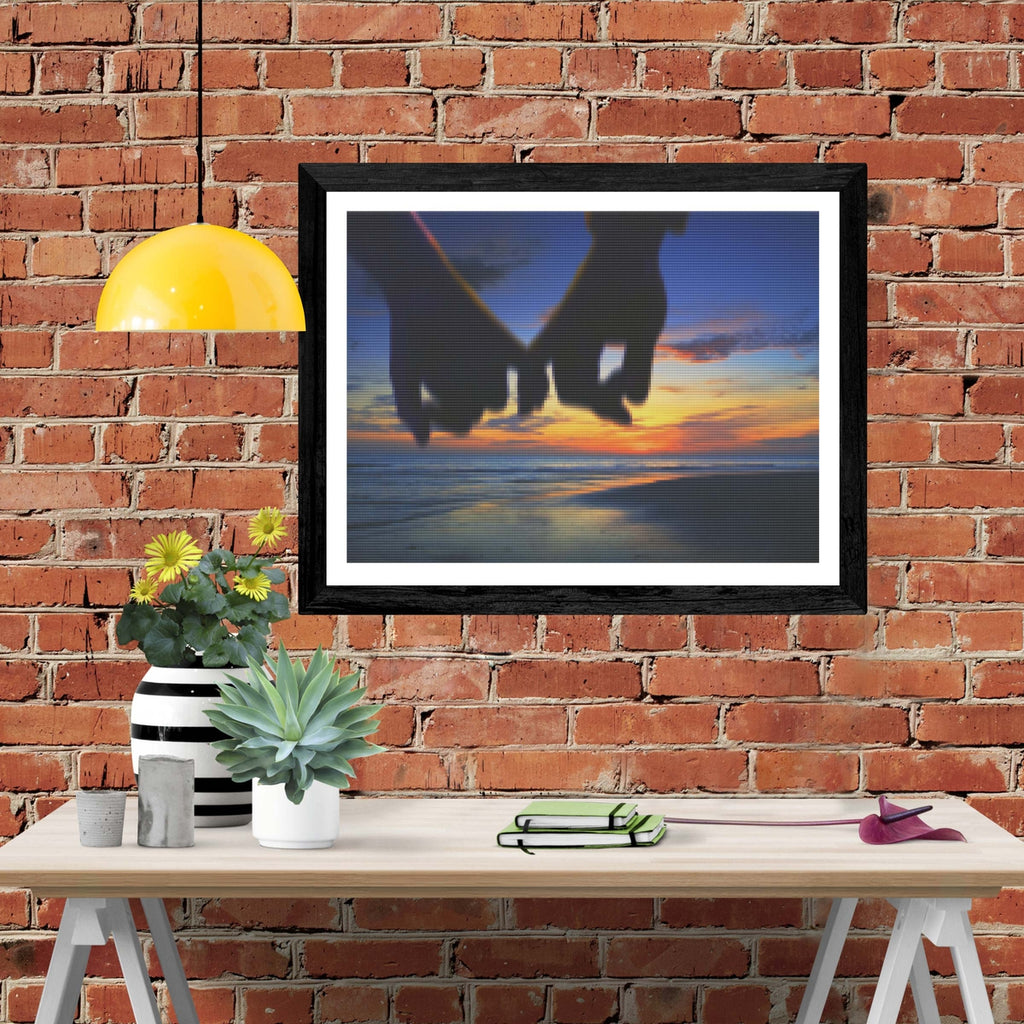 Relax, unwind, and create Diamond Art! "Lovers Holding Hands" is now available at Paint With Diamonds® as a full-drill Diamond Painting Kit in your choice of Round or Square diamonds.
