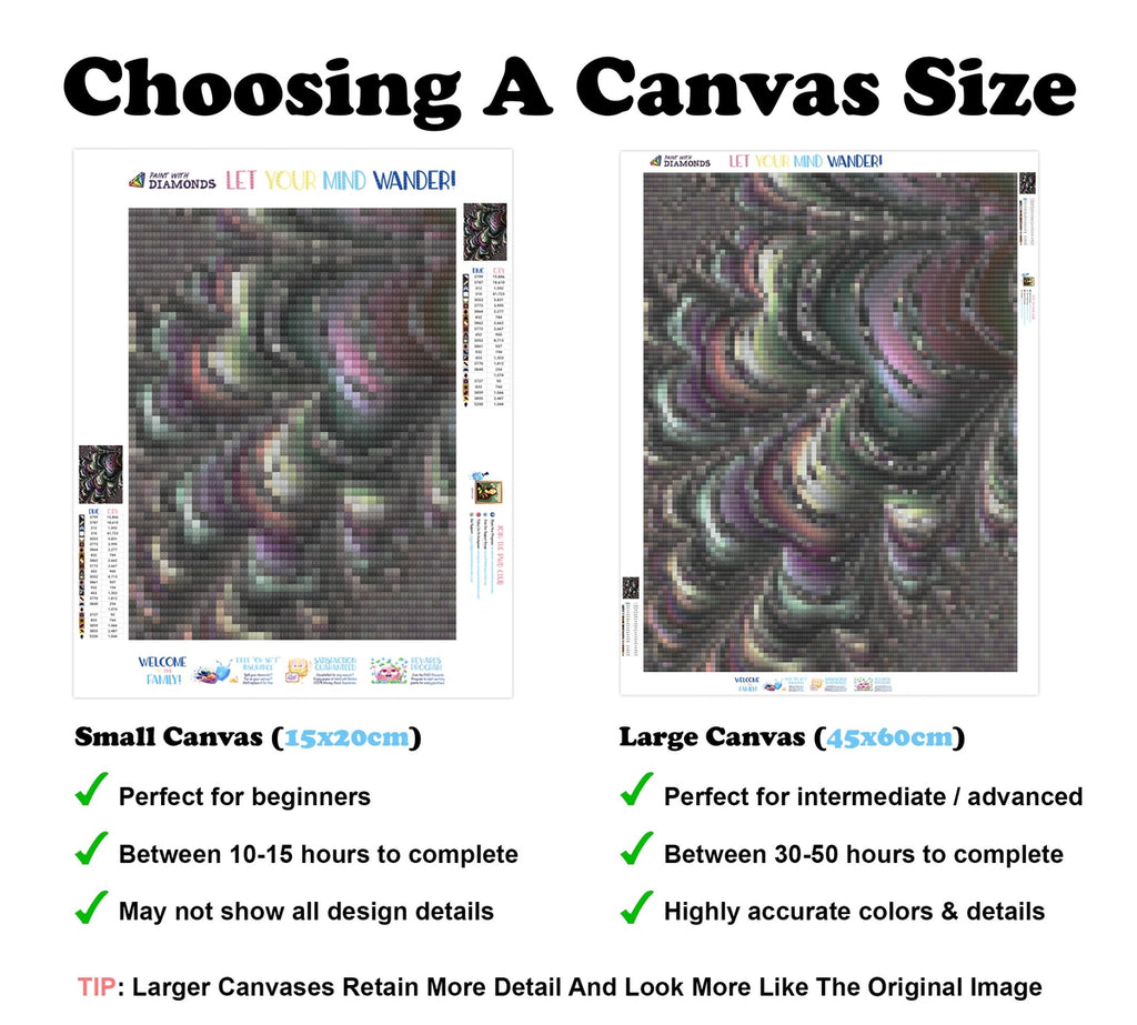 HAND-CODED CANVAS DESIGN: Our design team manually translates each artwork to Diamond Painting canvas. We adapt the original artwork by hand - thousands and thousands of pixels - to carefully chosen DMC color-coded diamonds.