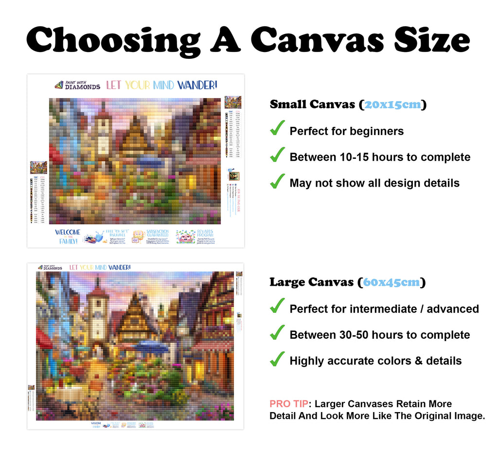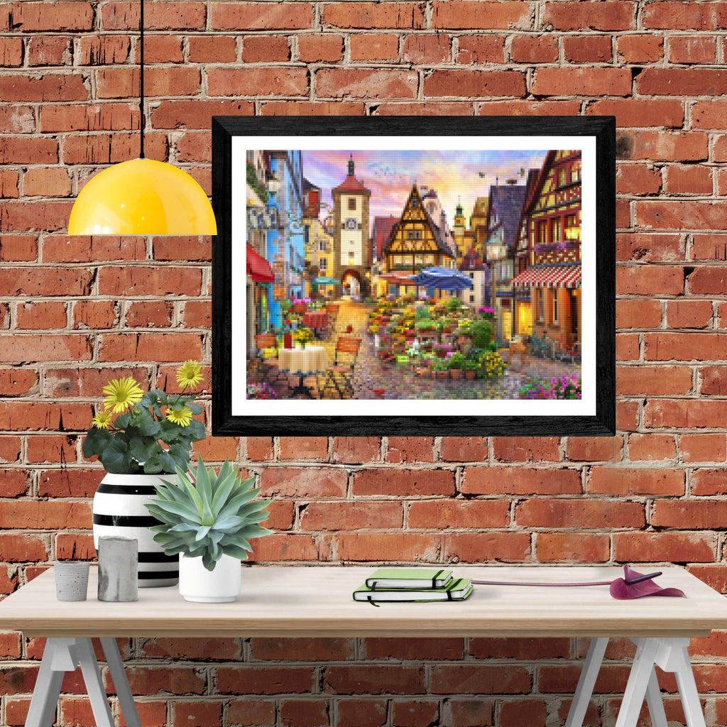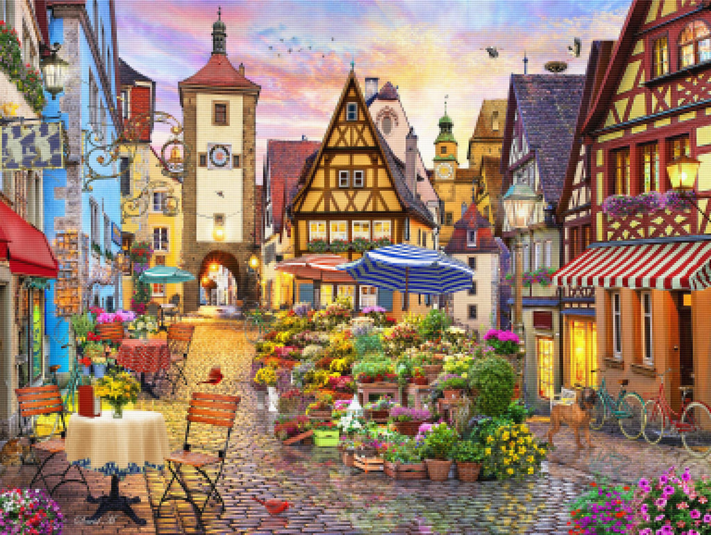 Relax, unwind, and create Diamond Art! "Bavarian Town" by artist David Maclean is now available exclusively at Paint With Diamonds® as a full-drill Diamond Painting Kit in your choice of Round or Square diamonds.