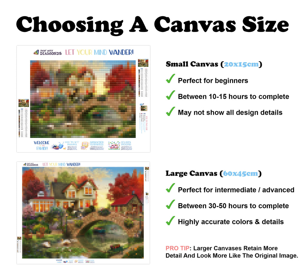 Large canvases show tiny details and all lettering, but may take up to 50+ hours to complete.