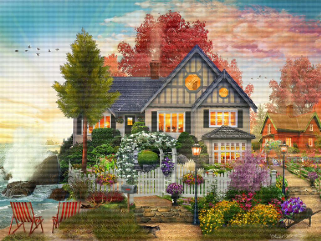 Relax, unwind, and create Diamond Art! "Oceanside Retreat" by artist David Maclean is now available exclusively at Paint With Diamonds® as a full-drill Diamond Painting Kit in your choice of Round or Square diamonds.
