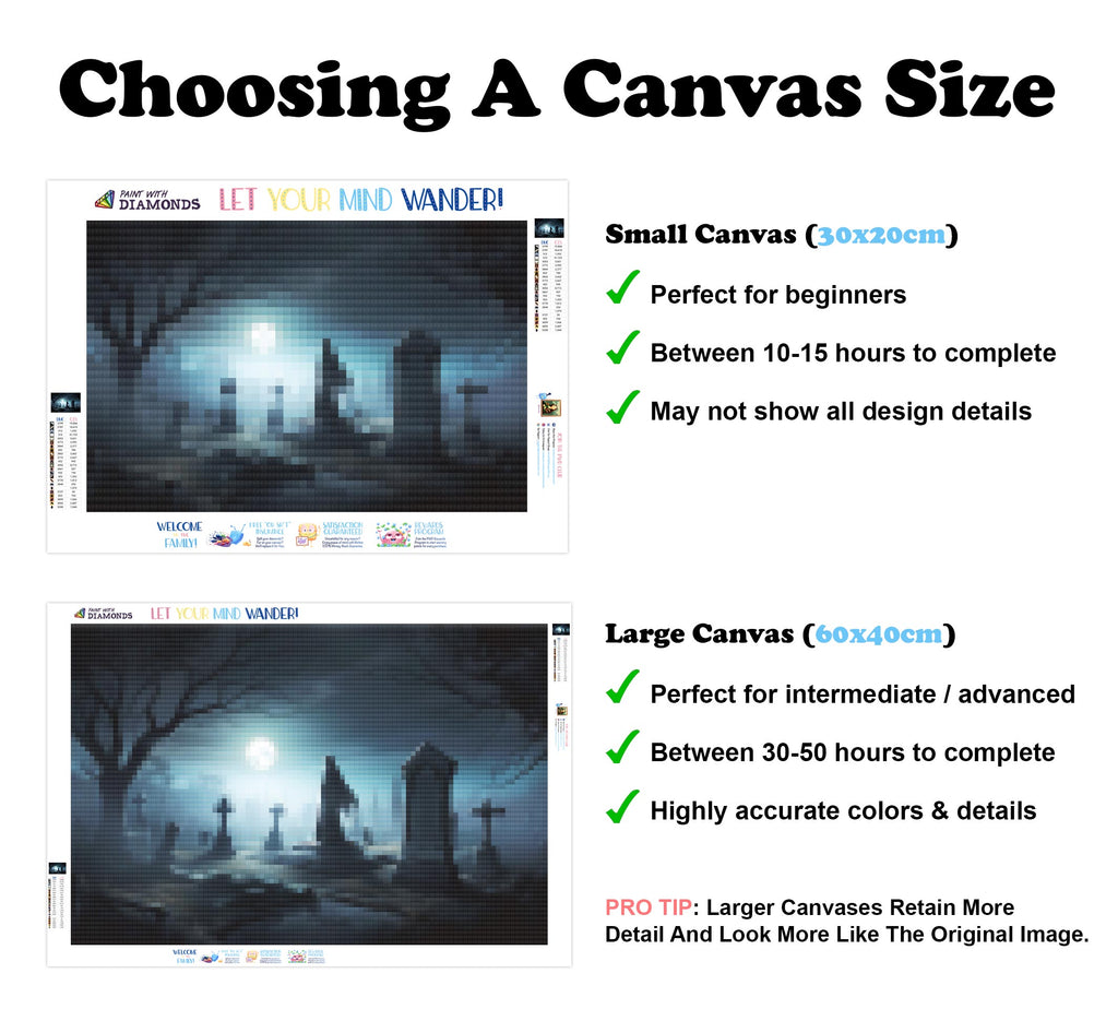 Escape into a world of vibrant colors and creative tranquility with the ‘Eerie Graveyard At Midnight’ Diamond Painting Kit. This exclusive full-drill design by artist Caleb Smith is available only at Paint With Diamonds. Let your mind unwind as you piece together shimmering diamonds to create a beautiful masterpiece.