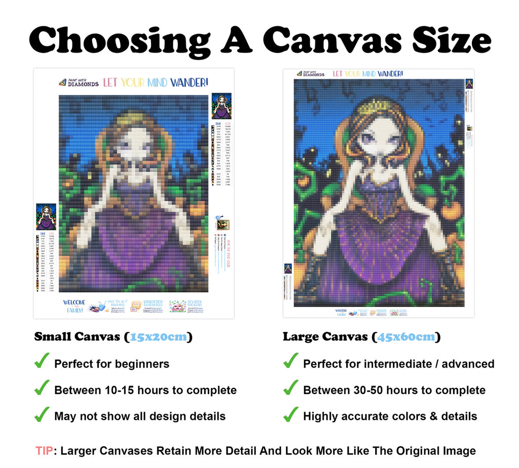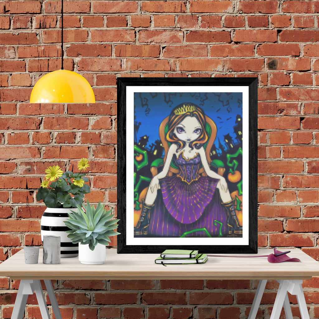 Escape into a world of vibrant colors and creative tranquility with the ‘Queen Of Halloween’ Diamond Painting Kit. This exclusive full-drill design by artist Jasmine Becket-Griffith is available only at Paint With Diamonds. Let your mind unwind as you piece together shimmering diamonds to create a beautiful masterpiece.