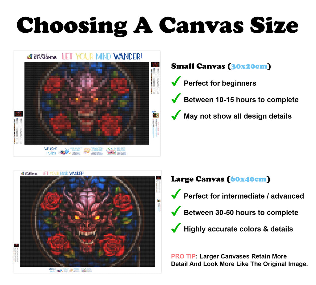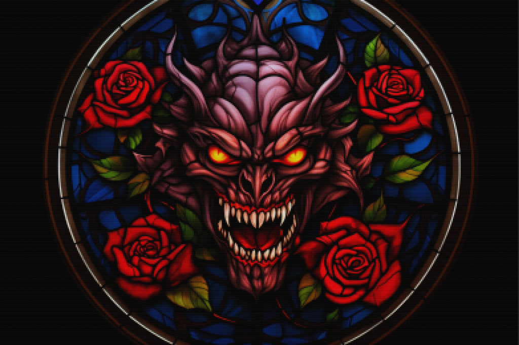 Escape into a world of vibrant colors and creative tranquility with the ‘Vampiric Rose Window Stained Glass’ Diamond Painting Kit. This exclusive full-drill design by artist Caleb Smith is available only at Paint With Diamonds. Let your mind unwind as you piece together shimmering diamonds to create a beautiful masterpiece.