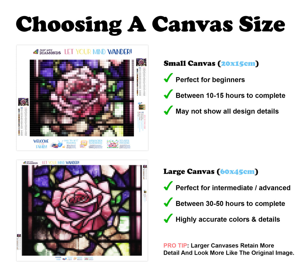 Escape into a world of vibrant colors and creative tranquility with the ‘Enchanted Pink Rose Stained Glass’ Diamond Painting Kit. This exclusive full-drill design by artist Caleb Smith is available only at Paint With Diamonds. Let your mind unwind as you piece together shimmering diamonds to create a beautiful masterpiece.