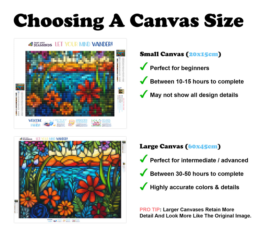 Premium Quality Diamond Painting Kit: Includes a velvety-soft adhesive canvas, eco-friendly shimmering resin diamonds, and a premium toolkit - everything you ned to get started on your next masterpiece.