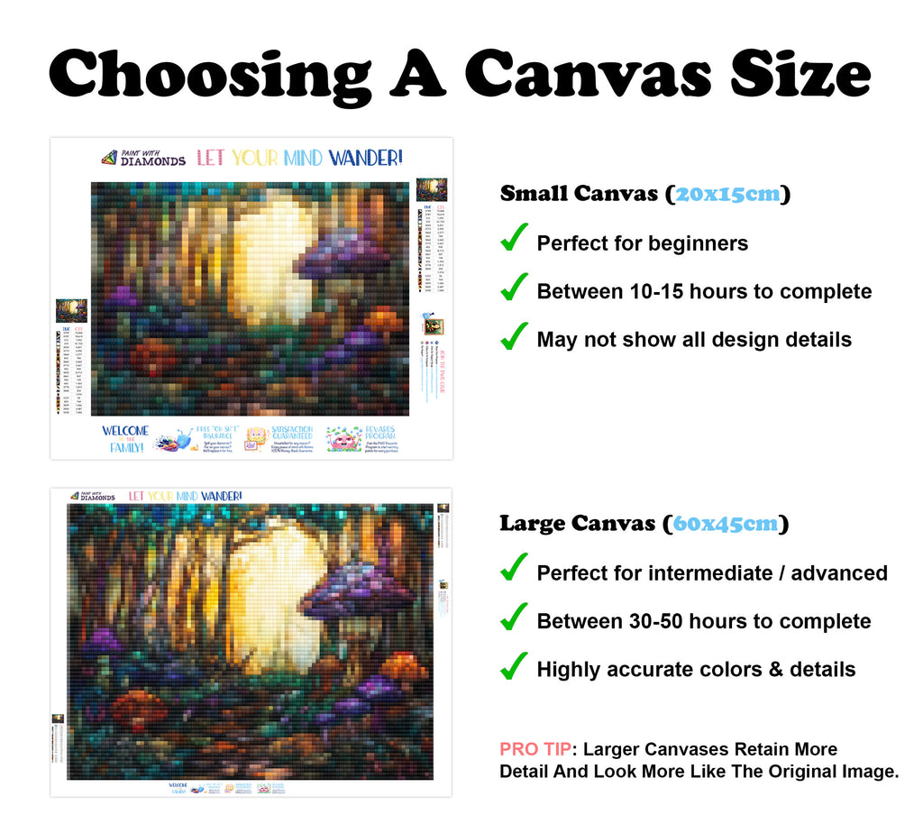 Escape into a world of vibrant colors and creative tranquility with the ‘The Mystical Enchanted Forest’ Diamond Painting Kit. This exclusive full-drill design by artist Caleb Smith is available only at Paint With Diamonds. Let your mind unwind as you piece together shimmering diamonds to create a beautiful masterpiece.