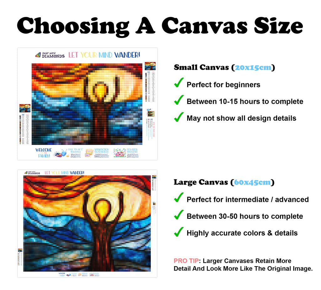 Premium Quality Diamond Painting Kit: Includes a velvety-soft adhesive canvas, eco-friendly shimmering resin diamonds, and a premium toolkit - everything you ned to get started on your next masterpiece.