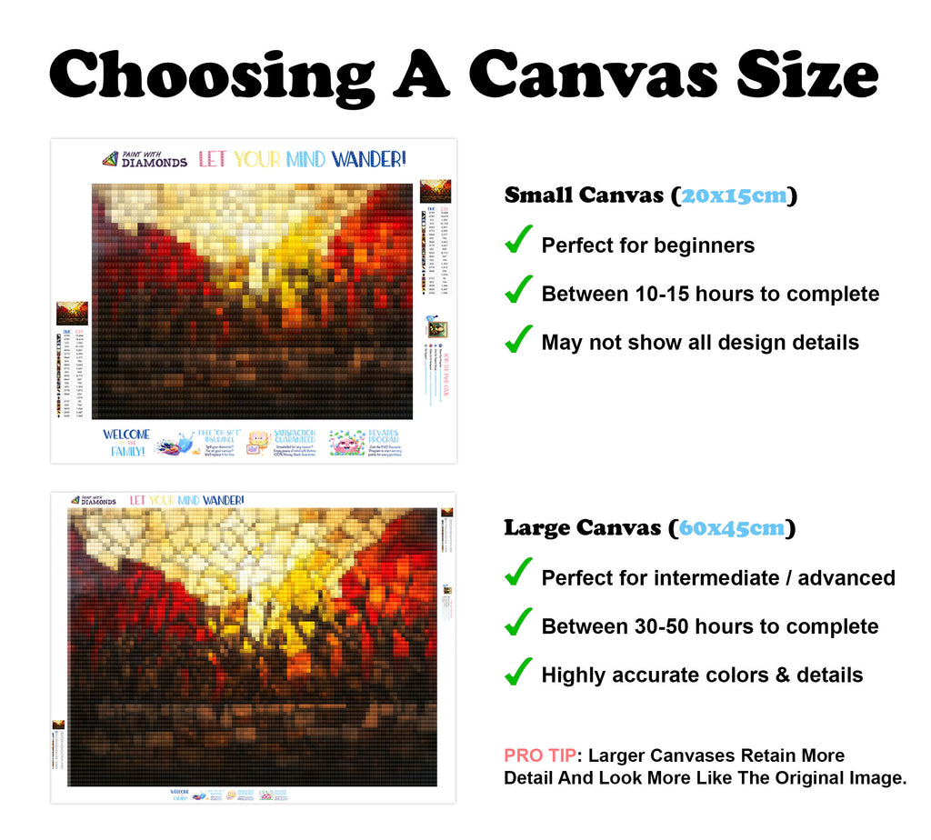 Premium Quality Diamond Painting Kit: Includes a velvety-soft adhesive canvas, eco-friendly shimmering resin diamonds, and a premium toolkit - everything you ned to get started on your next masterpiece.