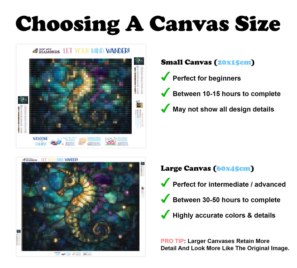 Escape into a world of vibrant colors and creative tranquility with the ‘The Whimsical Cosmic Seahorse’ Diamond Painting Kit. This exclusive full-drill design by artist Caleb Smith is available only at Paint With Diamonds. Let your mind unwind as you piece together shimmering diamonds to create a beautiful masterpiece.