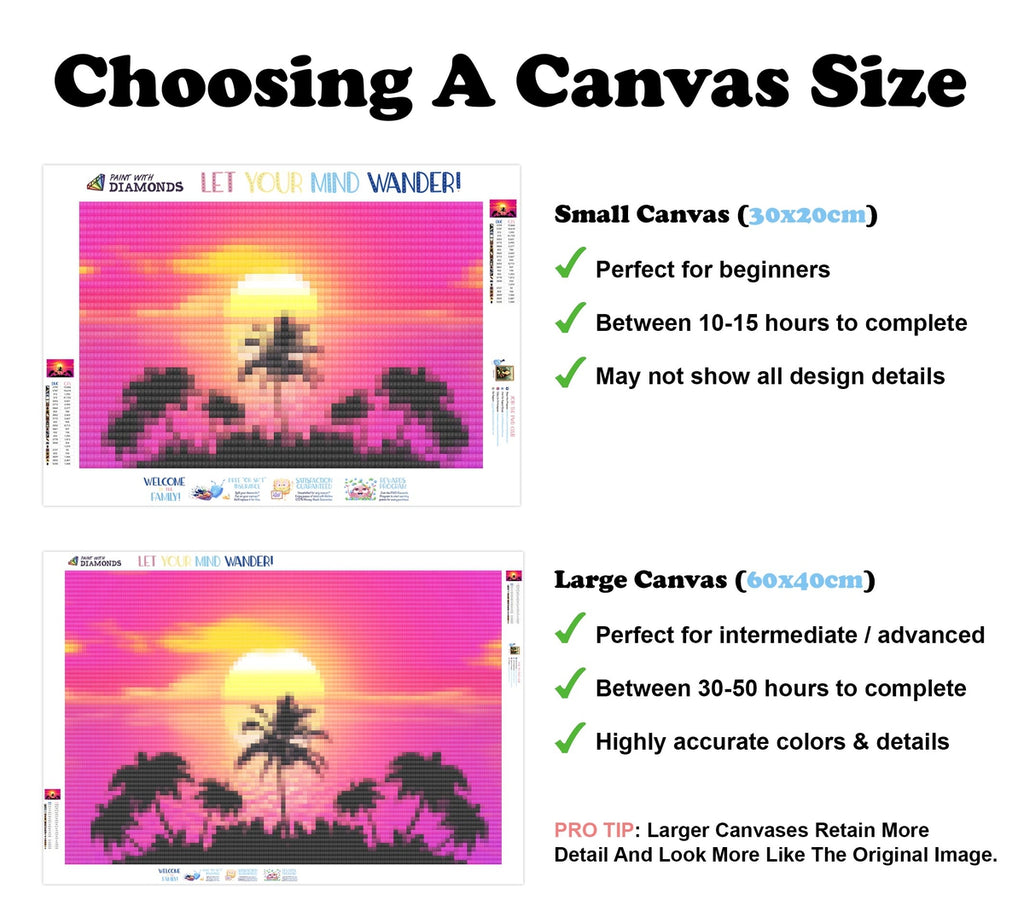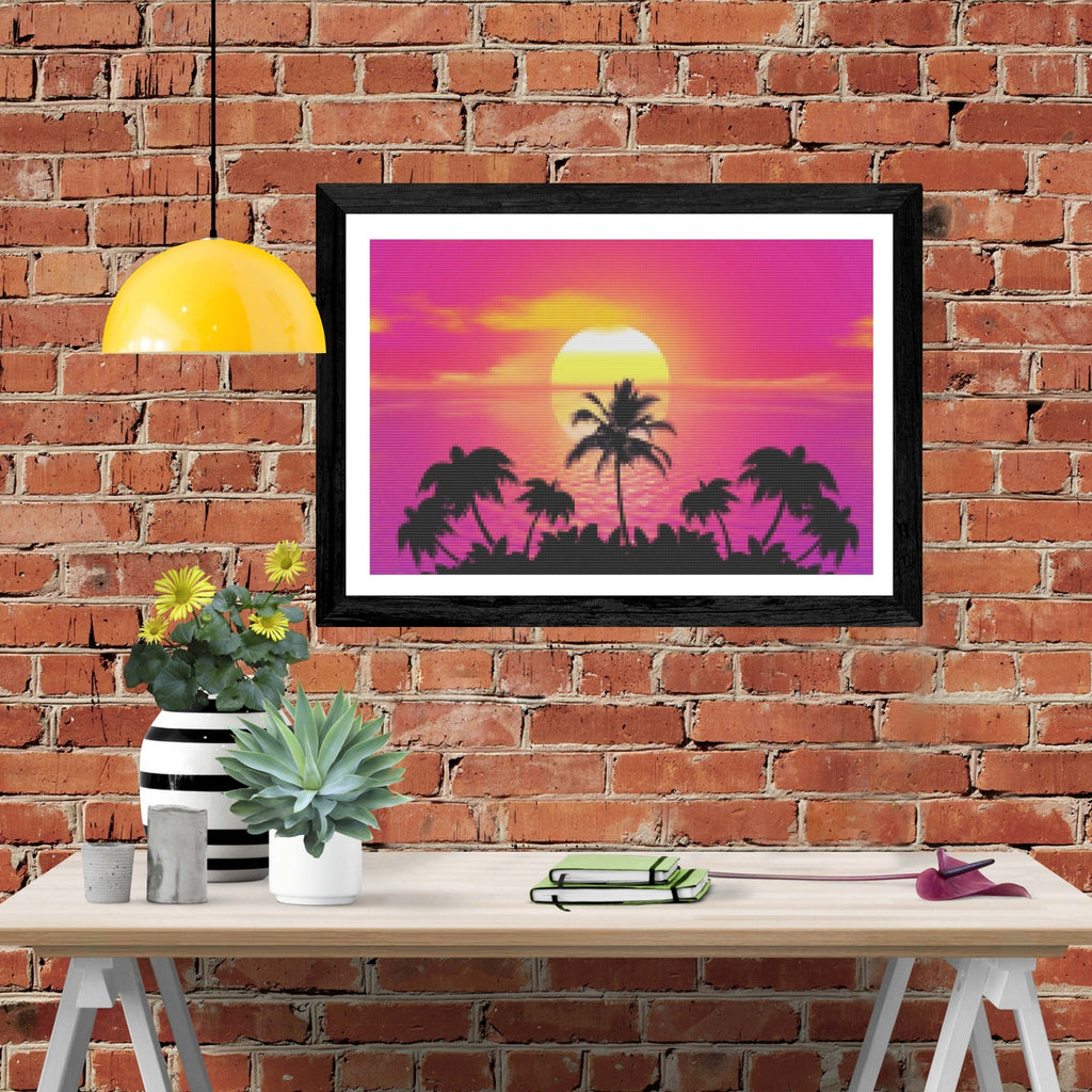 Relax, unwind, and create Diamond Art! "Sunset In The Tropics" is now available at Paint With Diamonds® as a full-drill Diamond Painting Kit in your choice of Round or Square diamonds.