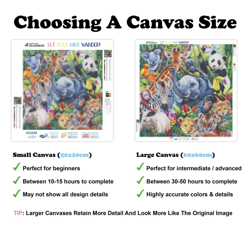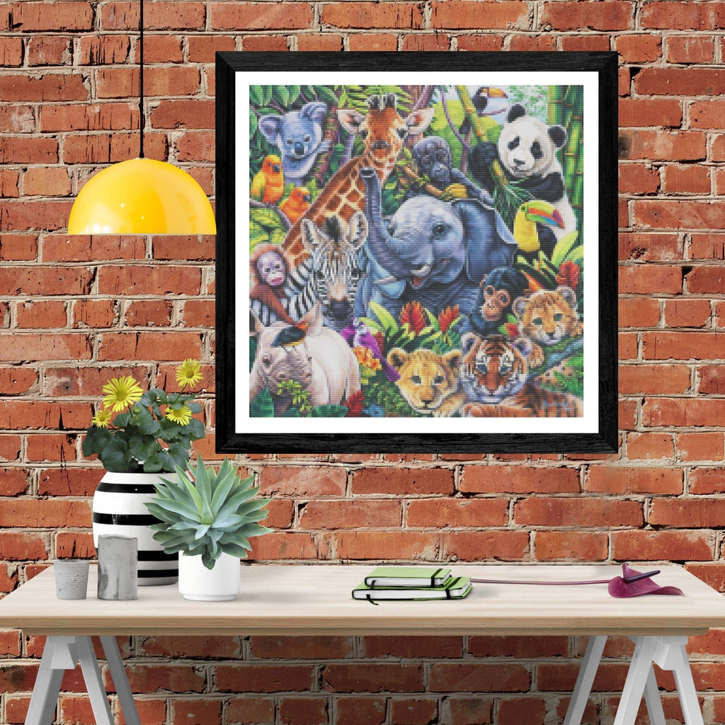 Feel the satisfaction of watching your Diamond Painting come together before your very eyes. This gorgeous artwork entitled "Jungle Babies" by artist Jenny Newland is now available as a Full Drill Diamond Painting Kit in your choice of Square or Round Diamonds.