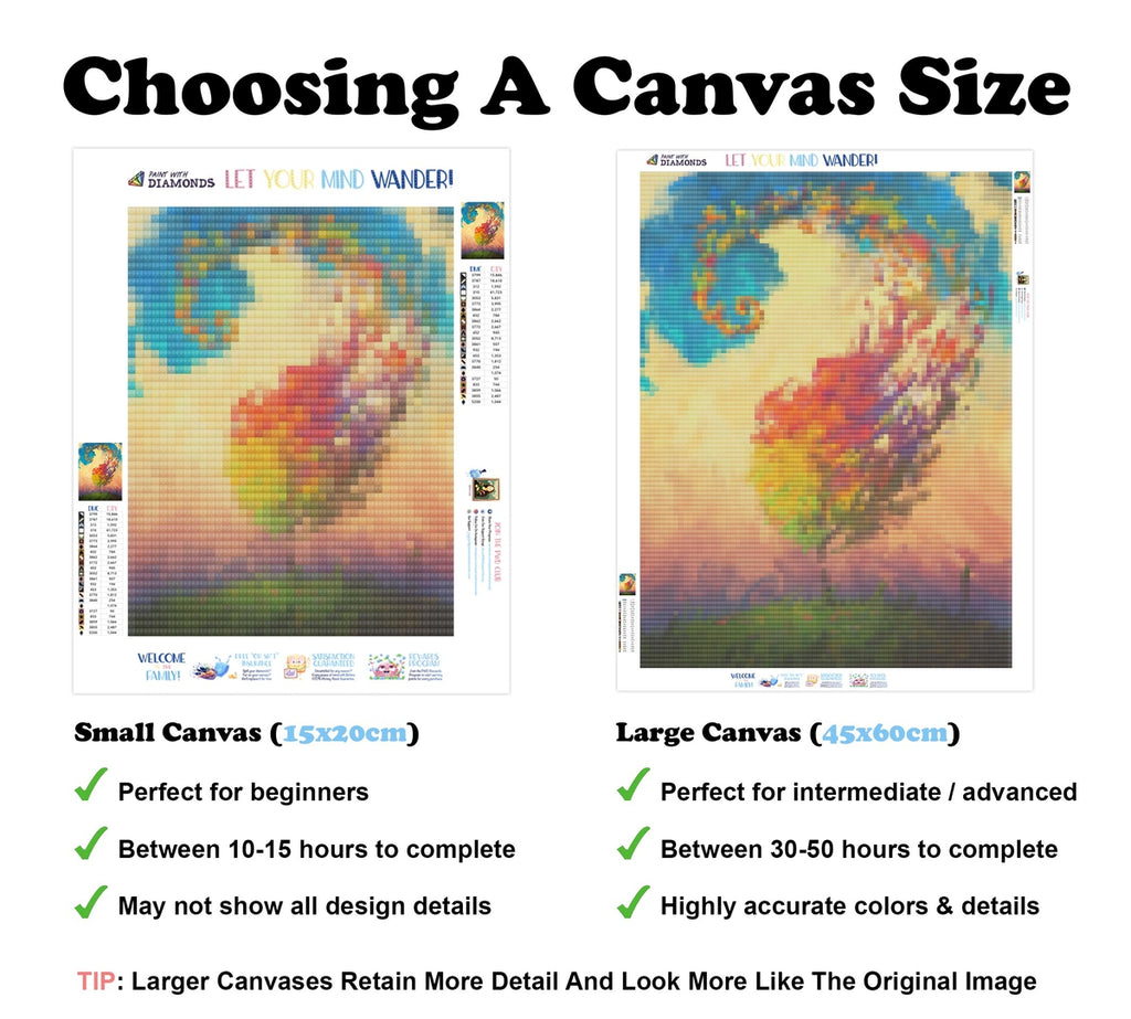 PREMIUMĀ DIAMOND PAINTING KIT:Ā OfficialĀ Diamond Art kit includes 1x stay-flat adhesive canvas, 1x set of shimmering eco-friendly resin diamonds, and 1x premium toolkit. Diamonds cover the whole canvas.