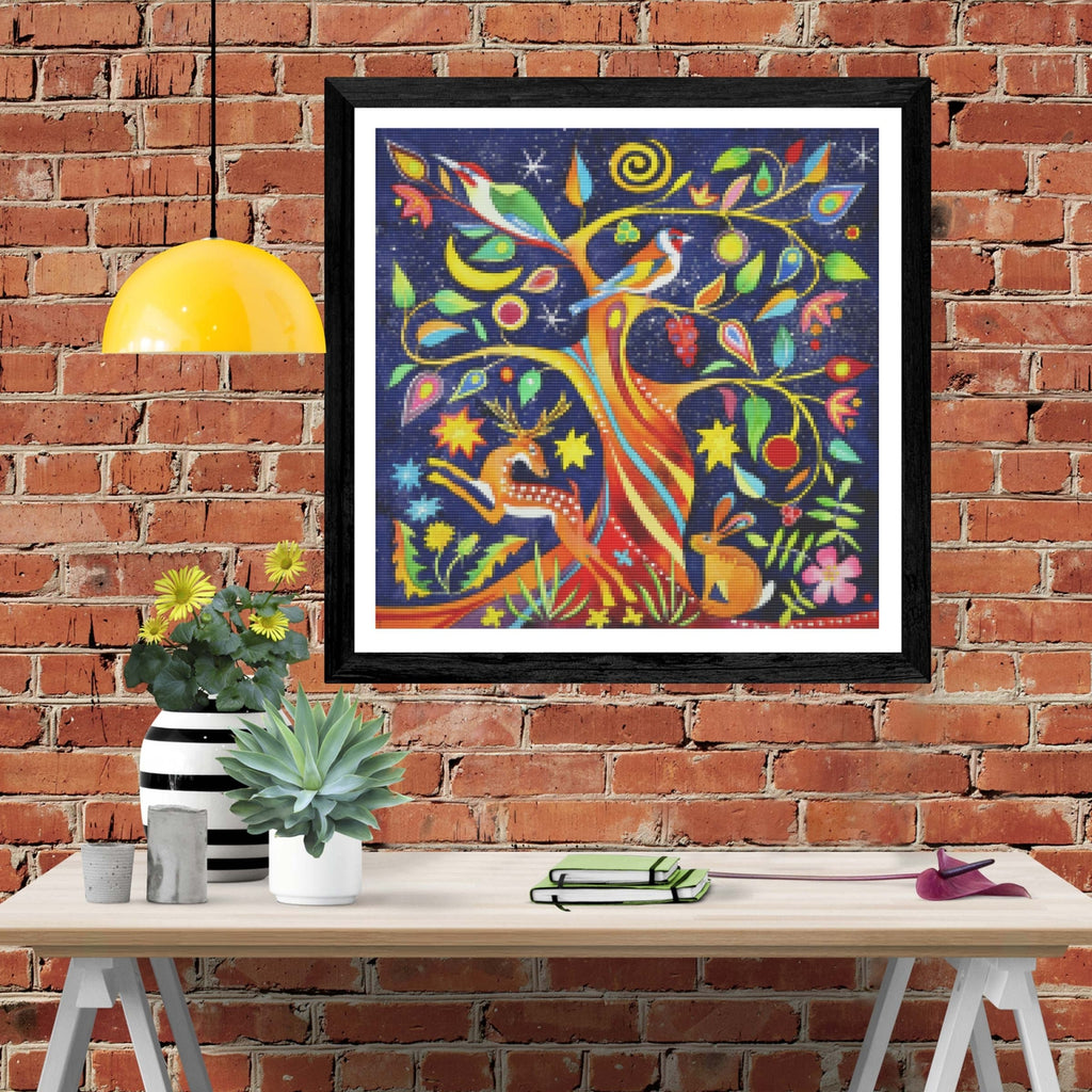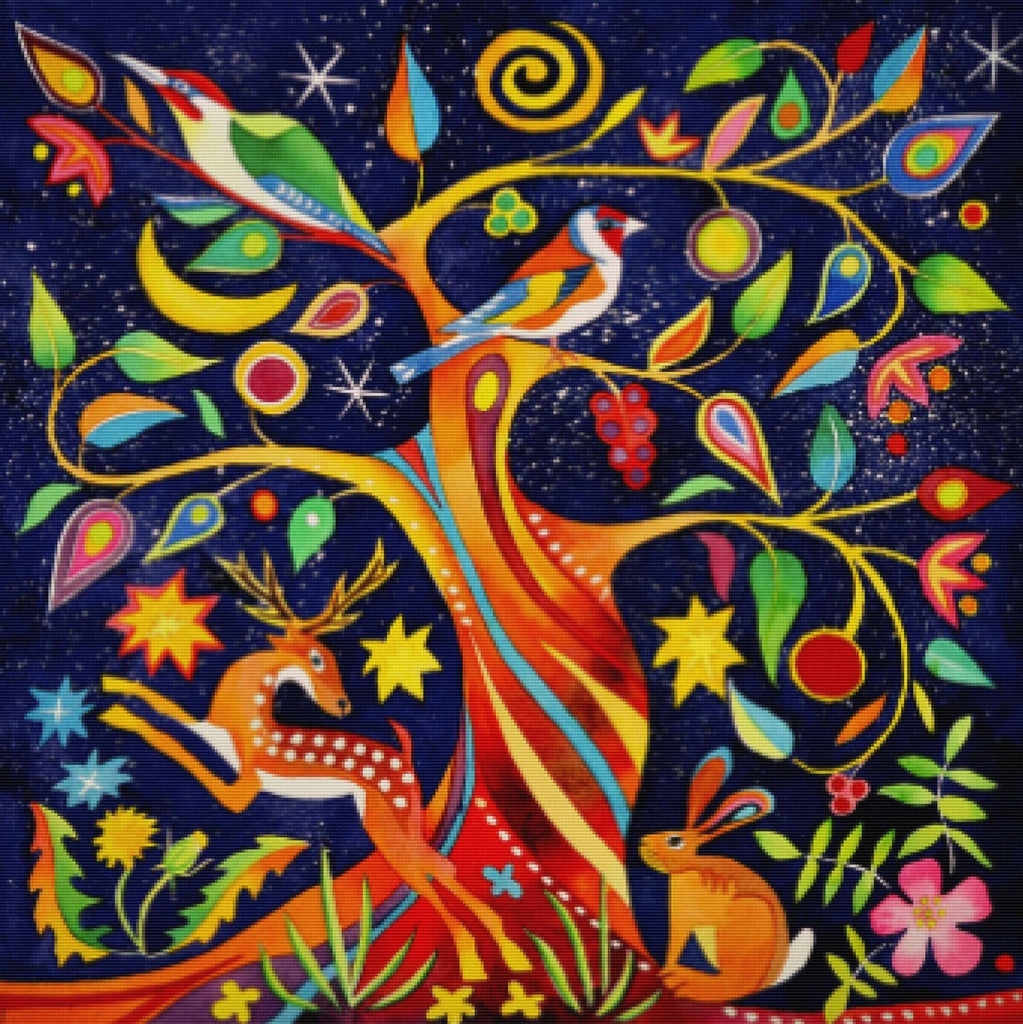 Create your own shimmering DIY wall art, one "diamond" at a time! This gorgeous full drill Diamond Painting Kit is entitled "Folk Tree" and includes everything you need to get started!