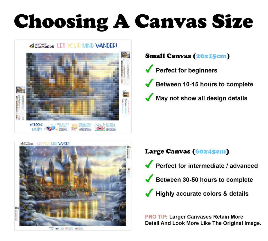 Escape into a world of vibrant colors and creative tranquility with the ‘Christmas at The Magic Castle’ Diamond Painting Kit. This exclusive full-drill design by artist Caleb Smith is available only at Paint With Diamonds. Let your mind unwind as you piece together shimmering diamonds to create a beautiful masterpiece.