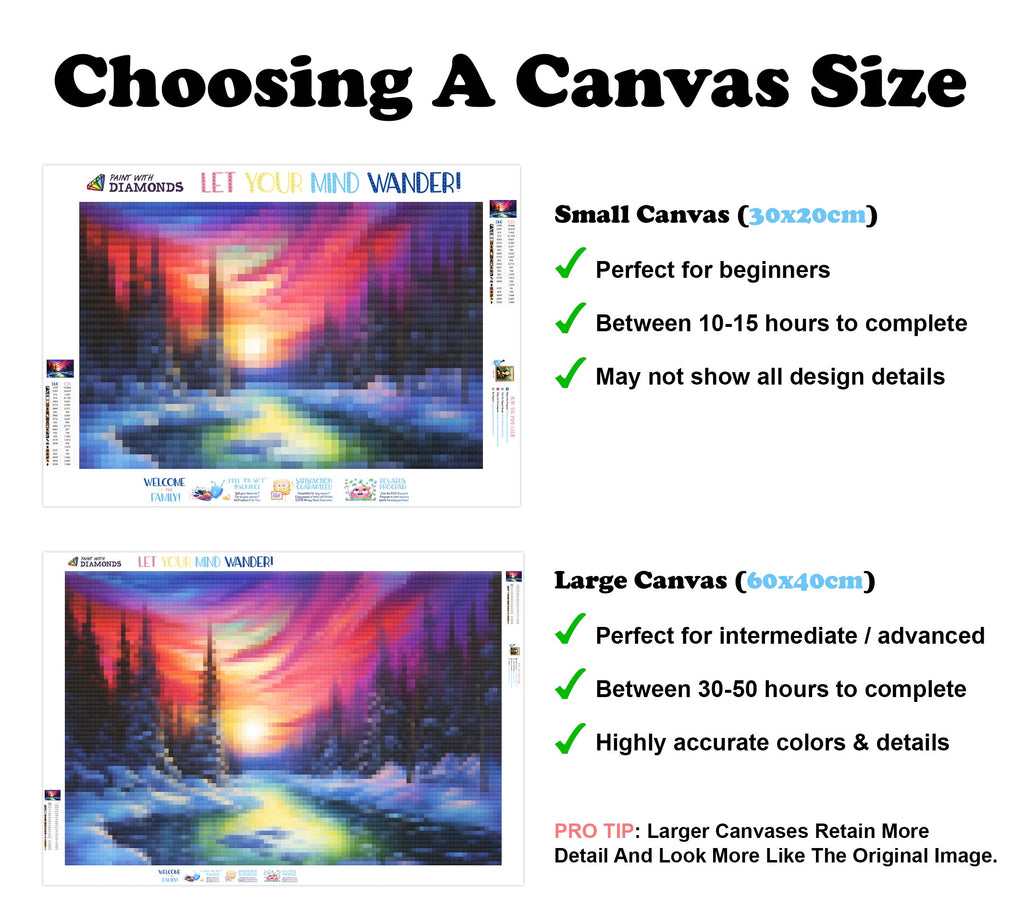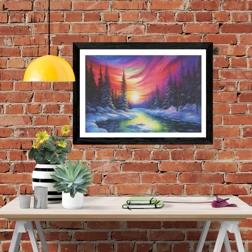 Escape into a world of vibrant colors and creative tranquility with the ‘Twilight Sky Northern Lights’ Diamond Painting Kit. This exclusive full-drill design by artist Caleb Smith is available only at Paint With Diamonds. Let your mind unwind as you piece together shimmering diamonds to create a beautiful masterpiece.