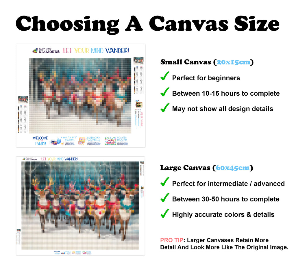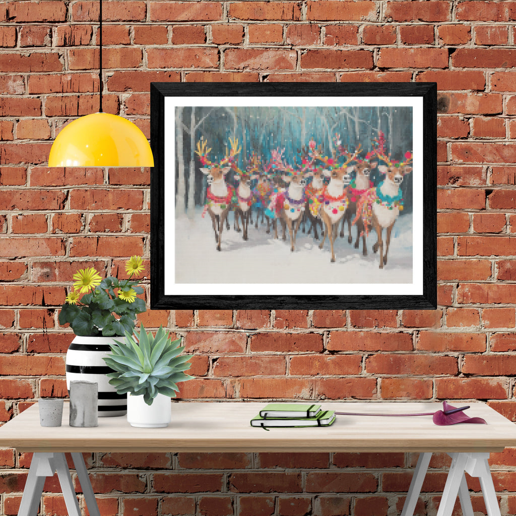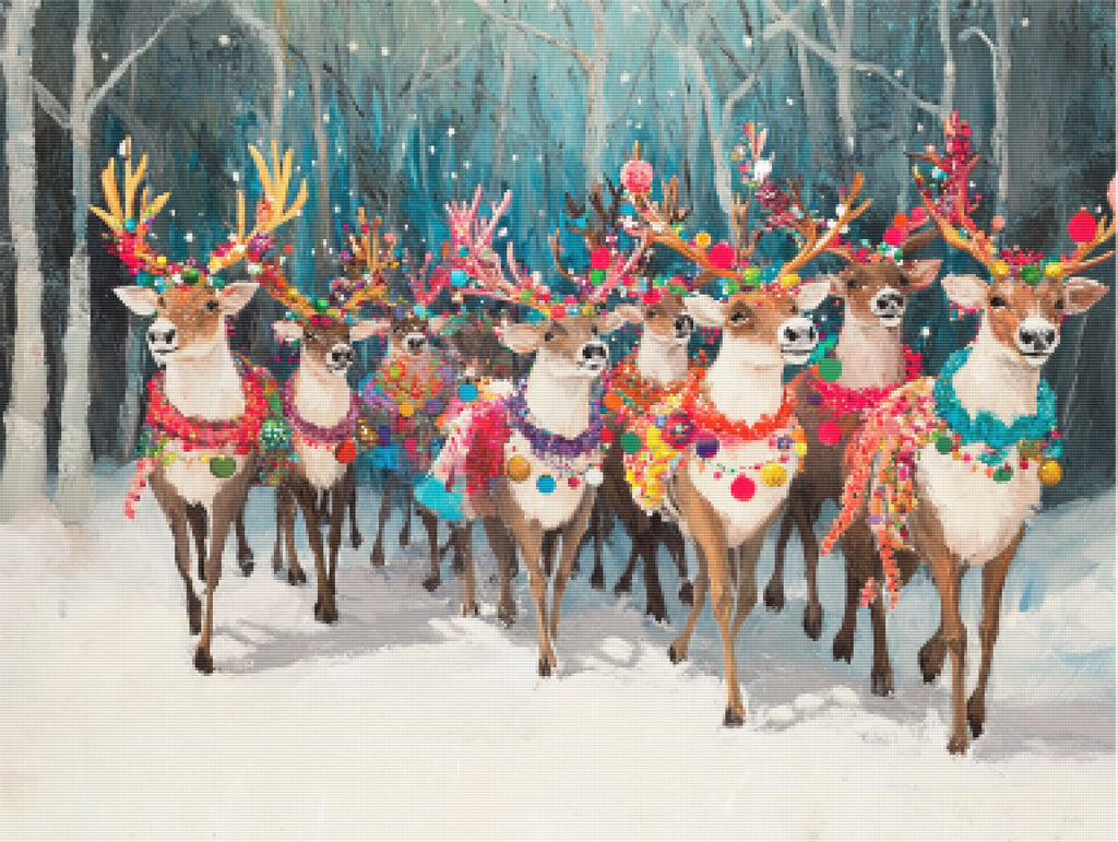 Escape into a world of vibrant colors and creative tranquility with the ‘Reindeer Holiday Parade’ Diamond Painting Kit. This exclusive full-drill design by artist Caleb Smith is available only at Paint With Diamonds. Let your mind unwind as you piece together shimmering diamonds to create a beautiful masterpiece.