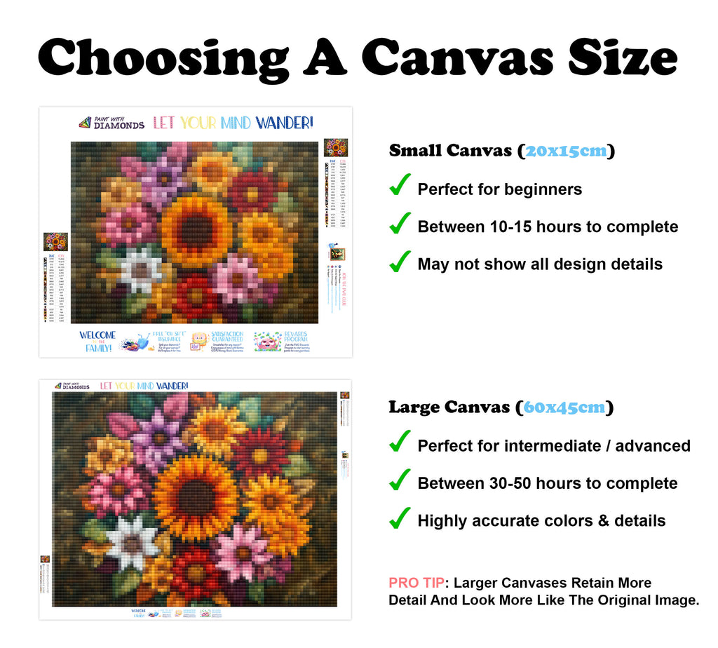 Premium Quality Diamond Painting Kit: Includes a velvety-soft adhesive canvas, eco-friendly shimmering resin diamonds, and a premium toolkit - everything you ned to get started on your next masterpiece.