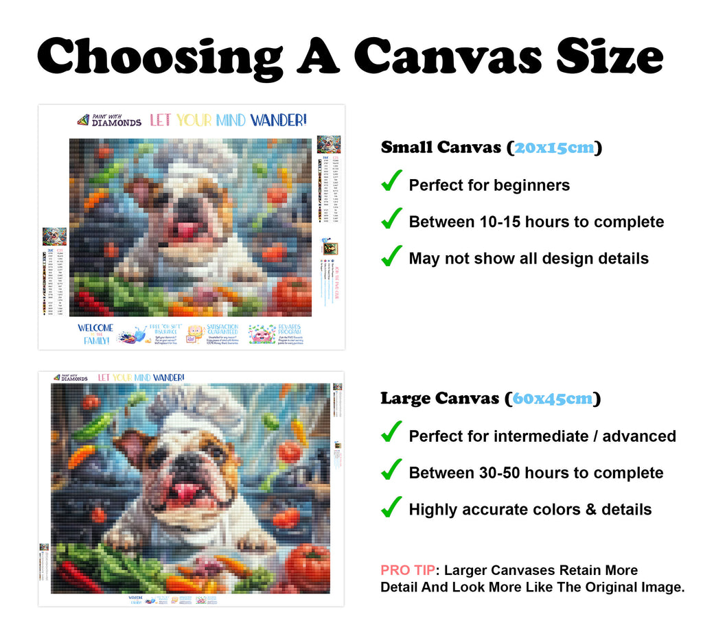 Large canvases show tiny details and all lettering, but may take up to 50+ hours to complete.