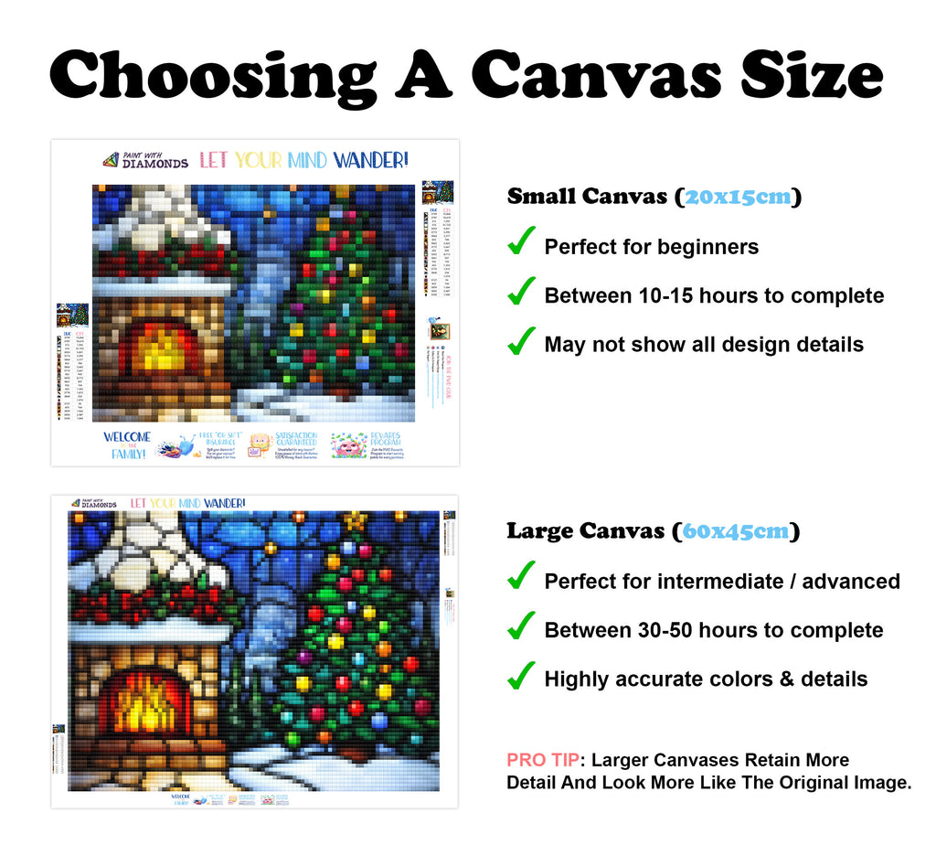 Large canvases show tiny details and all lettering, but may take up to 50+ hours to complete.