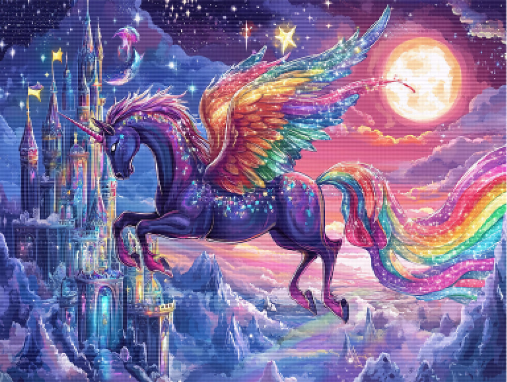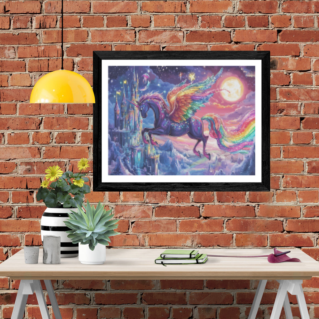 Escape into a world of vibrant colors and creative tranquility with the ‘Fairy Tale Pegasus’ Diamond Painting Kit. This exclusive full-drill design by artist Caleb Smith is available only at Paint With Diamonds. Let your mind unwind as you piece together shimmering diamonds to create a beautiful masterpiece.