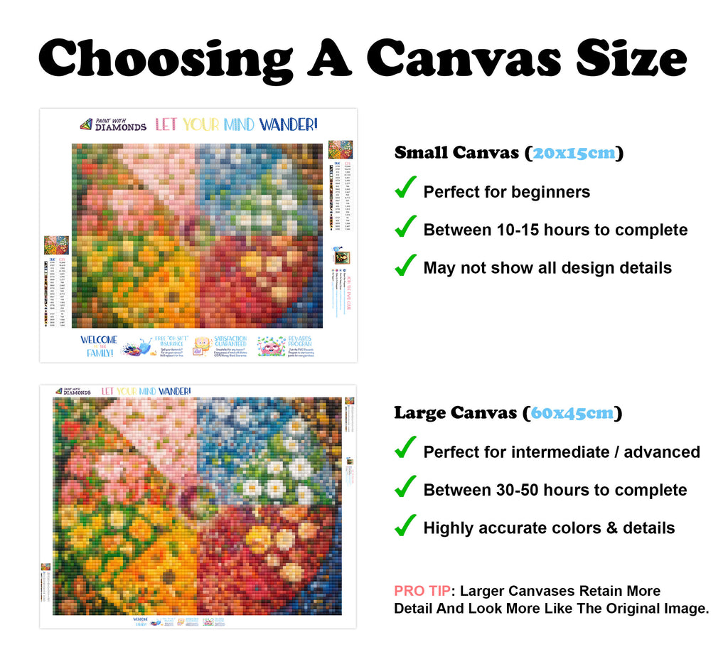 Premium Quality Diamond Painting Kit: Includes a velvety-soft adhesive canvas, eco-friendly shimmering resin diamonds, and a premium toolkit - everything you ned to get started on your next masterpiece.
