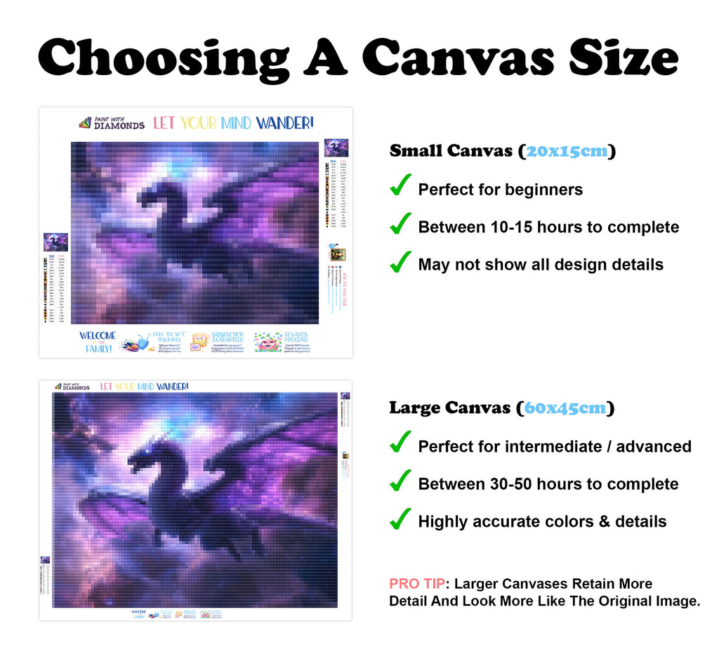 Escape into a world of vibrant colors and creative tranquility with the ‘Galactic Guardian Dragon’ Diamond Painting Kit. This exclusive full-drill design by artist Caleb Smith is available only at Paint With Diamonds. Let your mind unwind as you piece together shimmering diamonds to create a beautiful masterpiece.