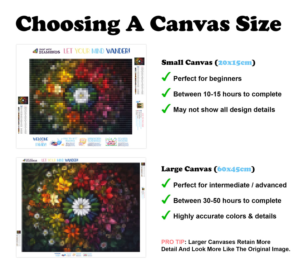 Premium Quality Diamond Painting Kit: Includes a velvety-soft adhesive canvas, eco-friendly shimmering resin diamonds, and a premium toolkit - everything you ned to get started on your next masterpiece.