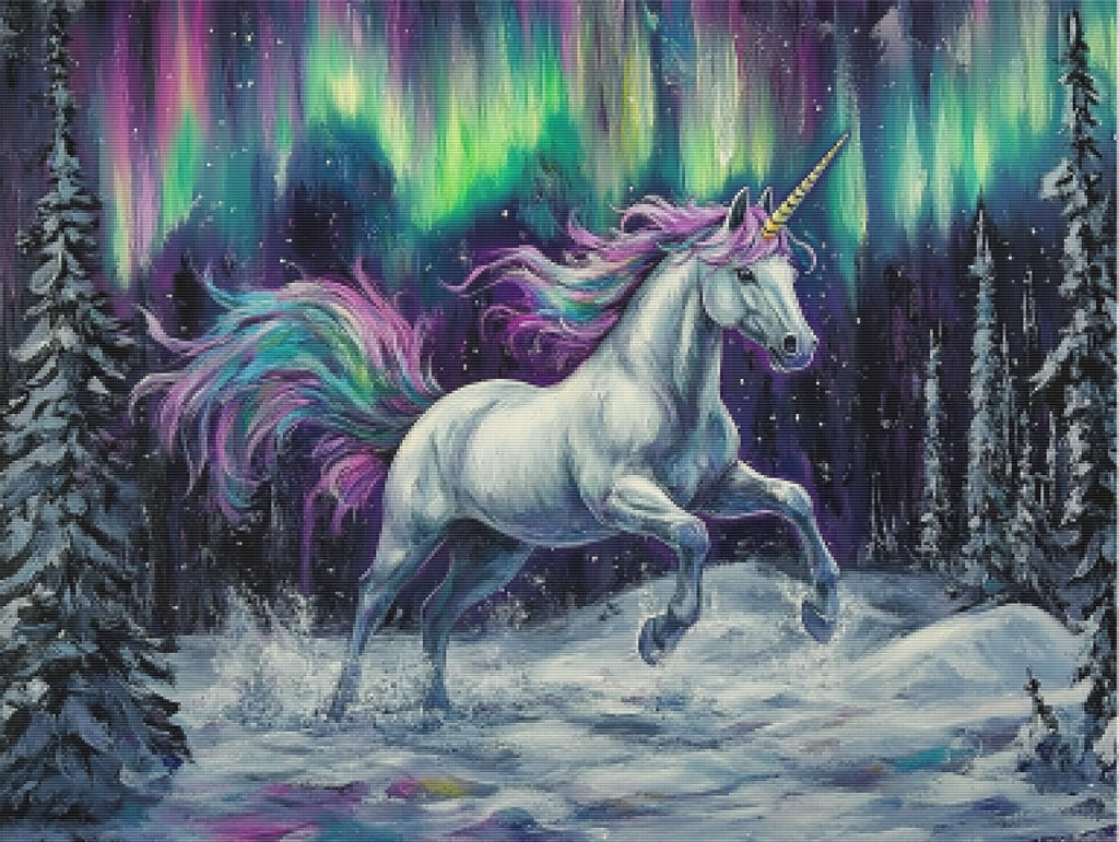 Ready to relax and create something beautiful? Add the 'Graceful Unicorn Prancing Through A Snowy Forest Diamond Painting Kit to your cart today and start your journey to creative calm.