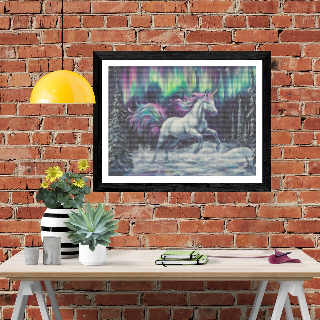 Escape into a world of vibrant colors and creative tranquility with the ‘Graceful Unicorn Prancing Through A Snowy Forest’ Diamond Painting Kit. This exclusive full-drill design by artist Caleb Smith is available only at Paint With Diamonds. Let your mind unwind as you piece together shimmering diamonds to create a beautiful masterpiece.