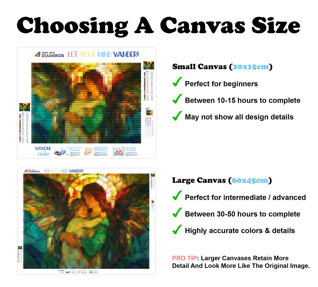 Escape into a world of vibrant colors and creative tranquility with the ‘Guardian Angel’ Diamond Painting Kit. This exclusive full-drill design by artist Caleb Smith is available only at Paint With Diamonds. Let your mind unwind as you piece together shimmering diamonds to create a beautiful masterpiece.