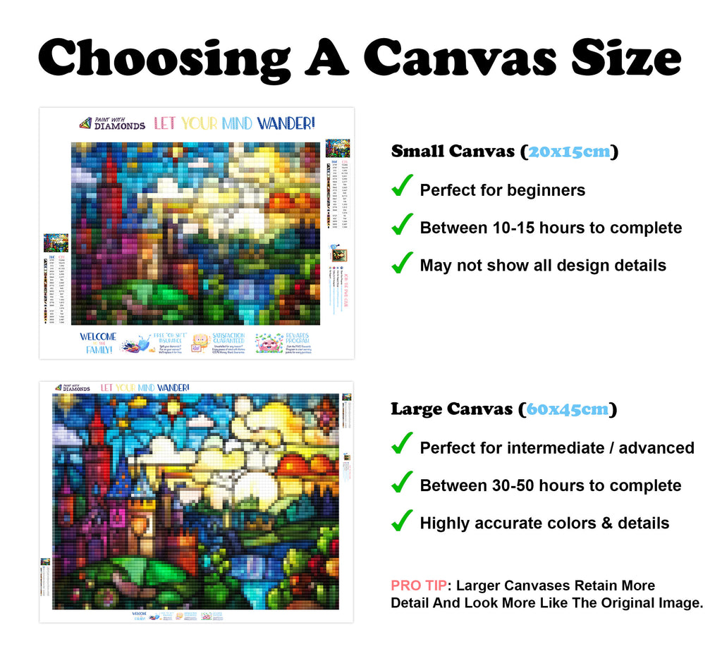 Escape into a world of vibrant colors and creative tranquility with the ‘Magical Cartoon Kingdom’ Diamond Painting Kit. This exclusive full-drill design by artist Caleb Smith is available only at Paint With Diamonds. Let your mind unwind as you piece together shimmering diamonds to create a beautiful masterpiece.