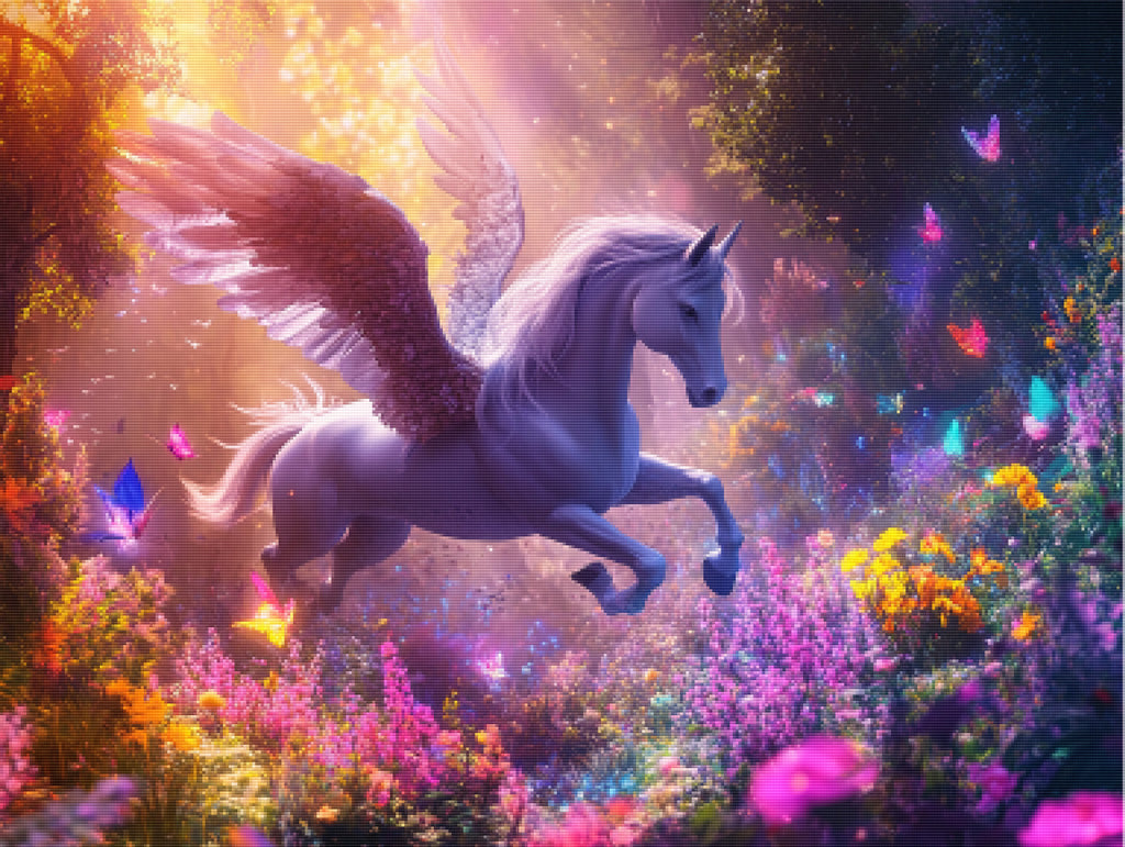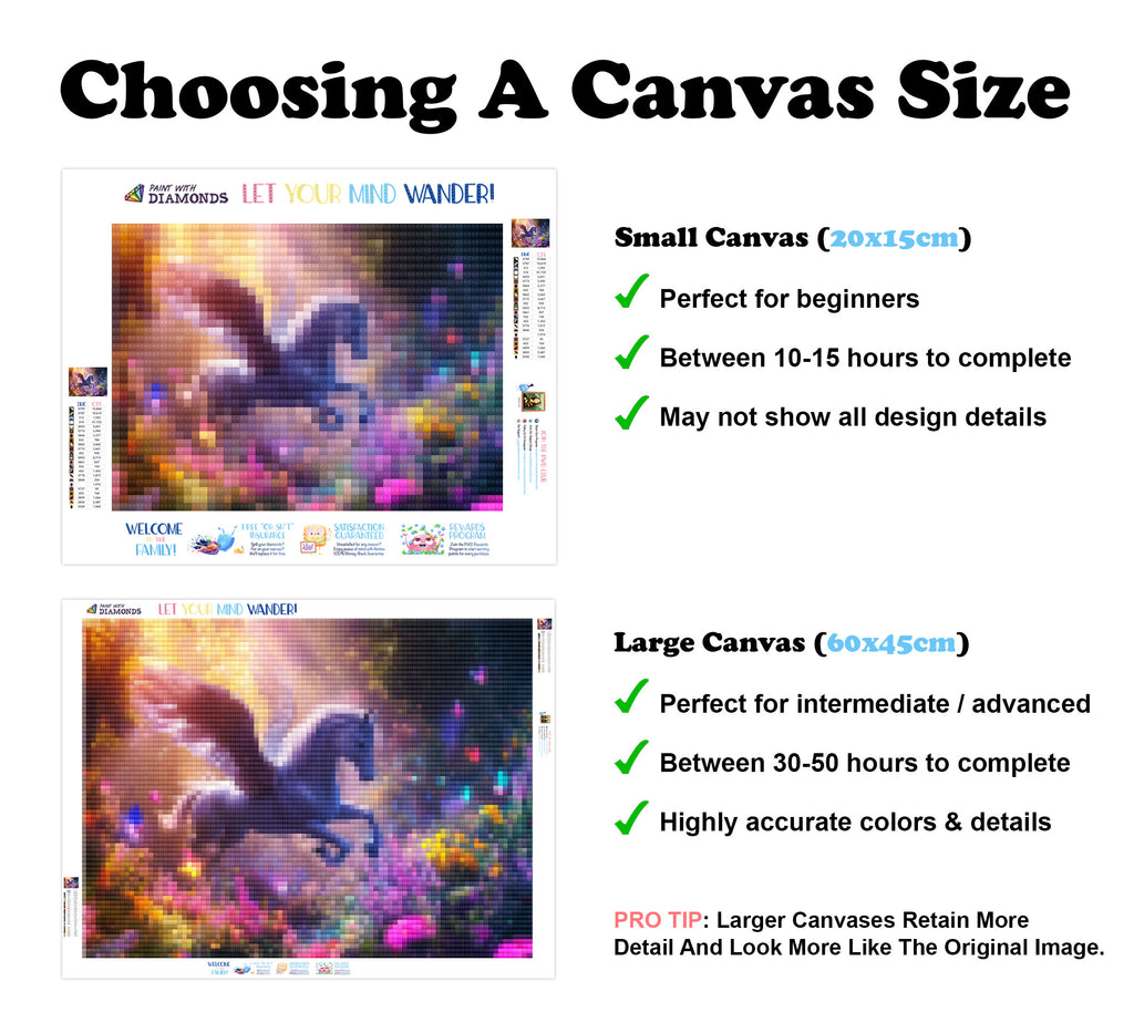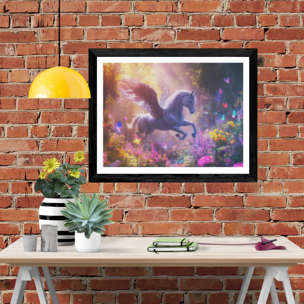Escape into a world of vibrant colors and creative tranquility with the ‘Mystical Pegasus Flight’ Diamond Painting Kit. This exclusive full-drill design by artist Caleb Smith is available only at Paint With Diamonds. Let your mind unwind as you piece together shimmering diamonds to create a beautiful masterpiece.