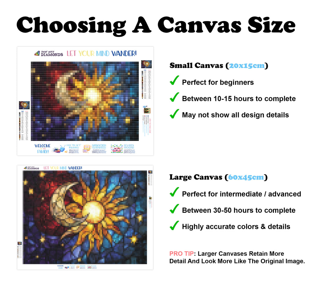 Premium Quality Diamond Painting Kit: Includes a velvety-soft adhesive canvas, eco-friendly shimmering resin diamonds, and a premium toolkit - everything you ned to get started on your next masterpiece.