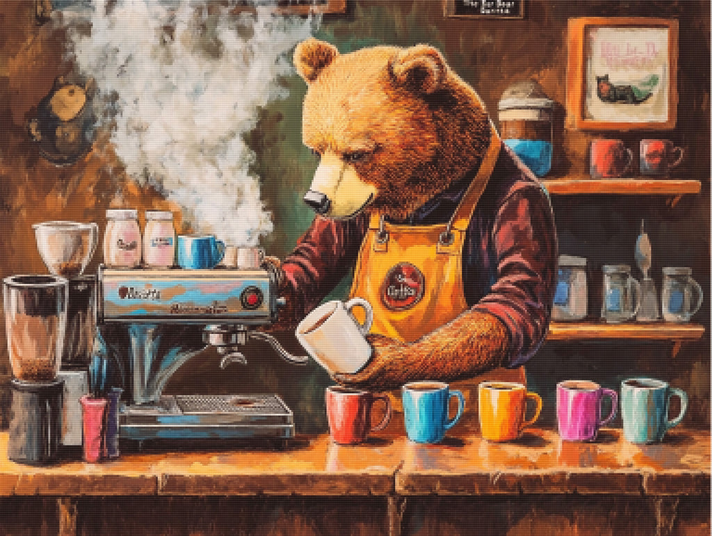 Ready to relax and create something beautiful? Add the 'The Bear Barista Diamond Painting Kit to your cart today and start your journey to creative calm.