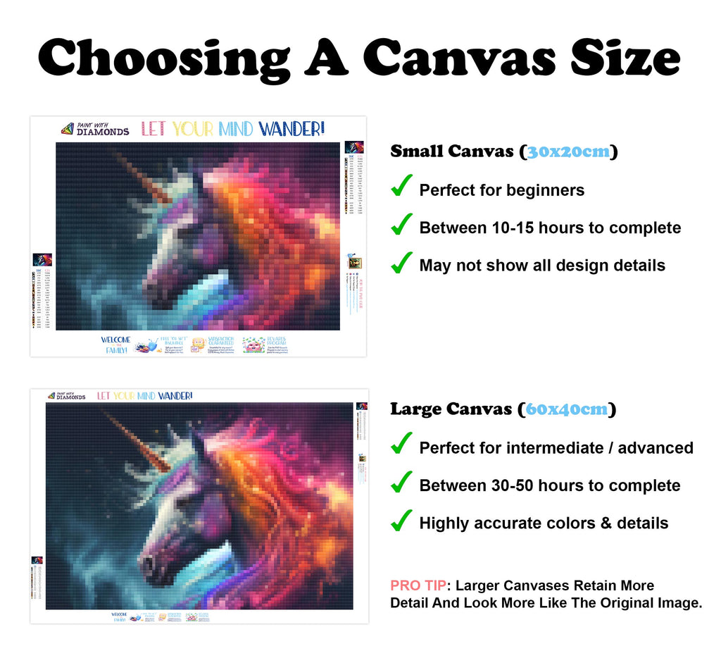 Escape into a world of vibrant colors and creative tranquility with the ‘Sparkling Galaxy Unicorn’ Diamond Painting Kit. This exclusive full-drill design by artist Caleb Smith is available only at Paint With Diamonds. Let your mind unwind as you piece together shimmering diamonds to create a beautiful masterpiece.