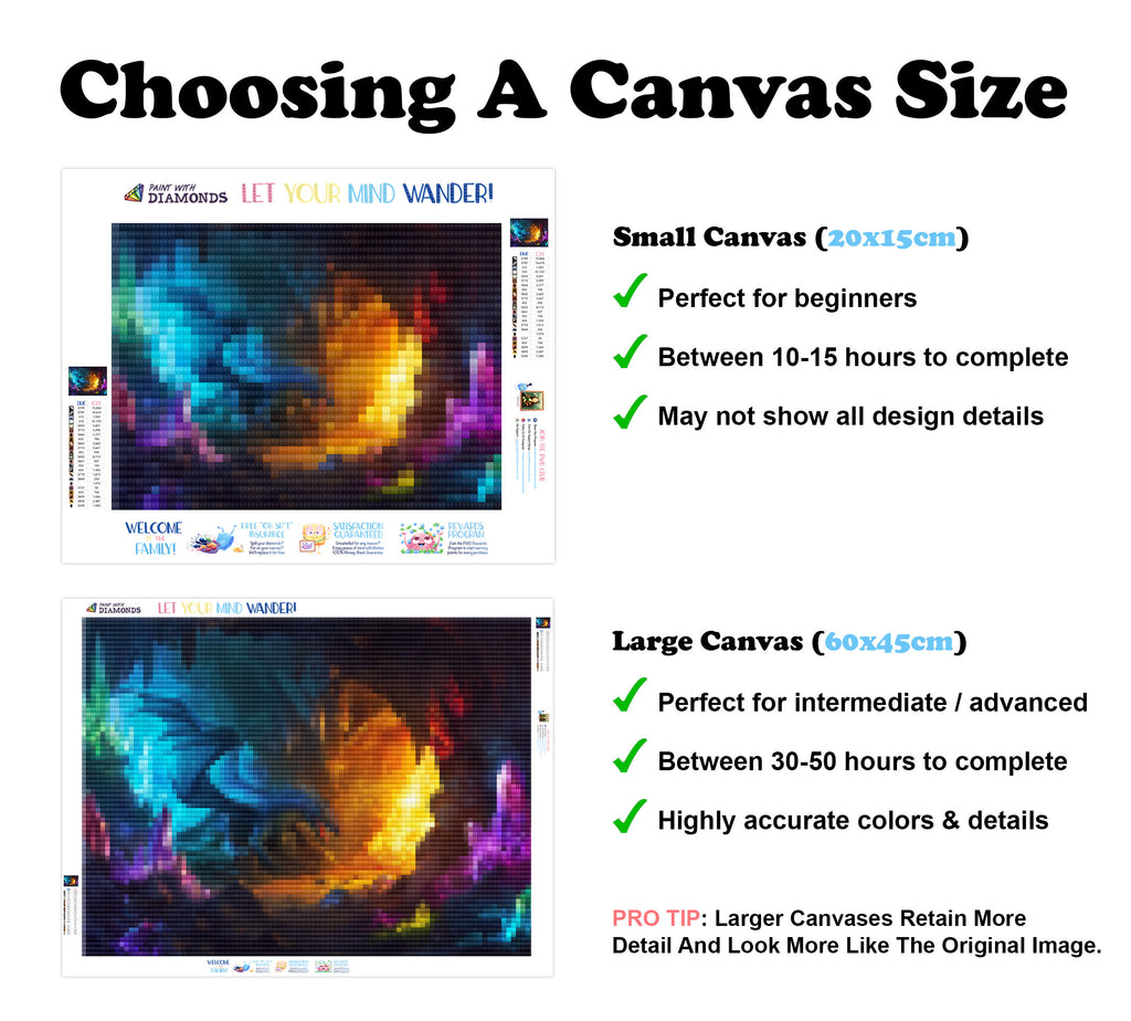 Escape into a world of vibrant colors and creative tranquility with the ‘Mystical Dragon's Lair’ Diamond Painting Kit. This exclusive full-drill design by artist Caleb Smith is available only at Paint With Diamonds. Let your mind unwind as you piece together shimmering diamonds to create a beautiful masterpiece.