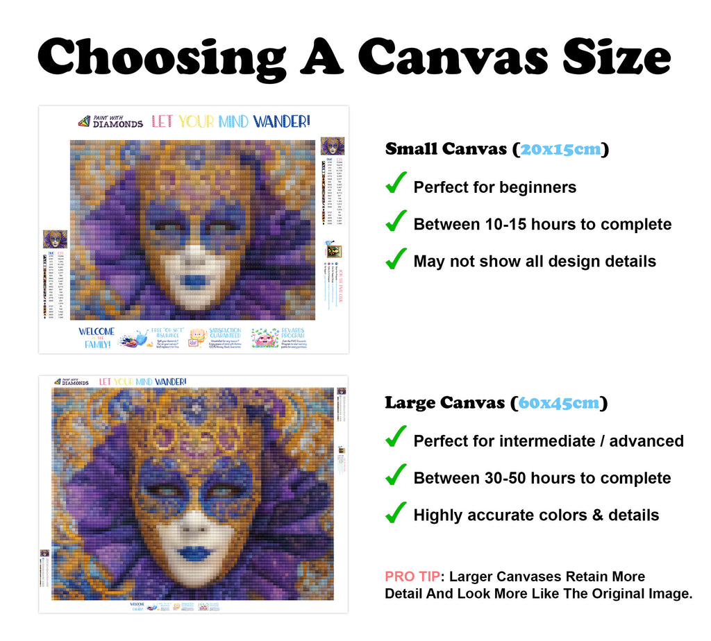 Premium Quality Diamond Painting Kit: Includes a velvety-soft adhesive canvas, eco-friendly shimmering resin diamonds, and a premium toolkit - everything you ned to get started on your next masterpiece.